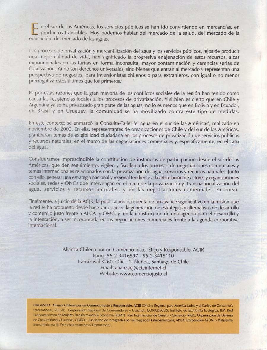 Exigibilidad ciudadana frente a procesos de privatización en servicios y recursos naturales