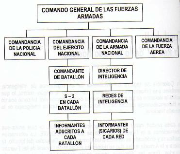 Para una noción más amplia del funcionamiento de la inteligencia en Colombia, el lector puede apreciar en la página un cuadro en el que se muestra su estructura de mando.