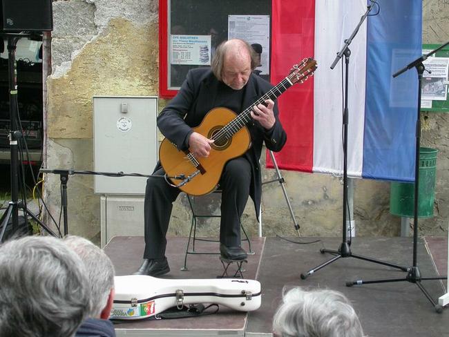 Juan Francisco Ortiz, guitariste et fils du survivant espagnol du camp de Mauthausen Francisco Ortiz Torres, a agrémenté l'inauguration de la plaque en hommage à Anna Pointner.