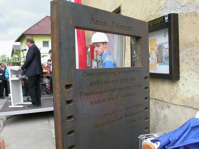 L'inauguration de la plaque commémorant les actions d'Anna Pointner a eu lieu le 9 mai 2015 à 14h, au 61, Vormarktstraße à Mauthausen.