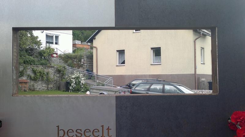 XSi l'on regarde par l'ouverture de la plaque, on aperçoit la maison où vivait Anna Pointner.