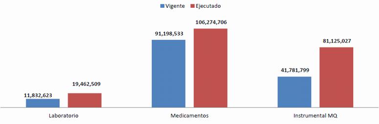 El datos más destacable dentro de este gráfico, es la barra roja, la cual muestra que 162 medicamentos no fueron comprados, lo que significa que no ingresarán al almacén del hospital. La razón por la que no se compraron fue que, 93 de estos no fueron programados por el HE y 69 no se obtuvieron a través de la licitación que realizó la Secretaría de Salud.