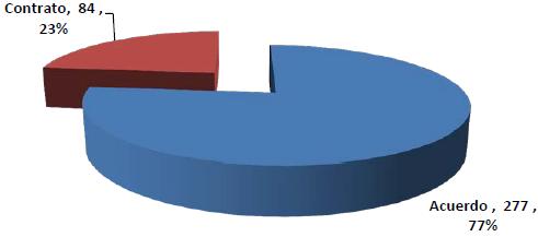 Este personal se desempeña en la Institución bajo dos figuras contractuales, nombramientos por acuerdo (Personal Permanente) y Personal por Contrato (Empleados temporales) |17|. Es importante resaltar que áreas tan sensibles como emergencia de pediatría, emergencia de cirugía, ortopedia, Clínicas Periféricas de Emergencia (CLIPER) funcionan en su mayoría con personal con la modalidad de contrato, sin embargo el hospital solo cuenta con aproximadamente L. 4, 000,000 (cuatro millones) para terminar el año, siendo una cantidad claramente insuficiente para el funcionamiento hospitalario en estos servicios.