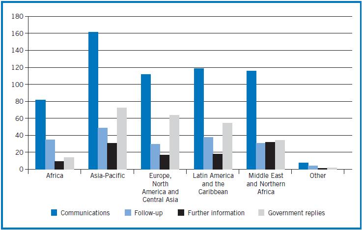 Special procedures may send follow-up communications when developments warrant a new intervention. Many follow-up communications are based on additional information submitted. In 2012, 31 % of communications were follow-up communications.