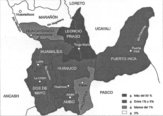 Elaboración: Laboratorio de Estadística de la Pontificia Universidad Católica.El hecho que el distrito judicial de Lima aparezca como el más recurrido por los denunciantes a nivel nacional, con 1583 denuncias, no implica que estos hechos se hubieran cometido en este departamento, pues sólo 55 casos denunciados ocurrieron en el departamento de Lima (6), correspondiendo las restantes a detenciones en otros departamentos del país. La alta proporción de recurrencia ante el distrito judicial de Lima puede explicarse debido a las mejores condiciones de acceso al servicio de justicia, así como a factores de seguridad personal a diferencia de lo que habría sucedido en el interior del país. Asimismo, otro factor que puede contribuir a explicar tal nivel de recurrencia, estaría en que muchas de las organizaciones no gubernamentales que apoyaron a los denunciantes en la interposición de denuncias, tenían su sede en la capital del país.